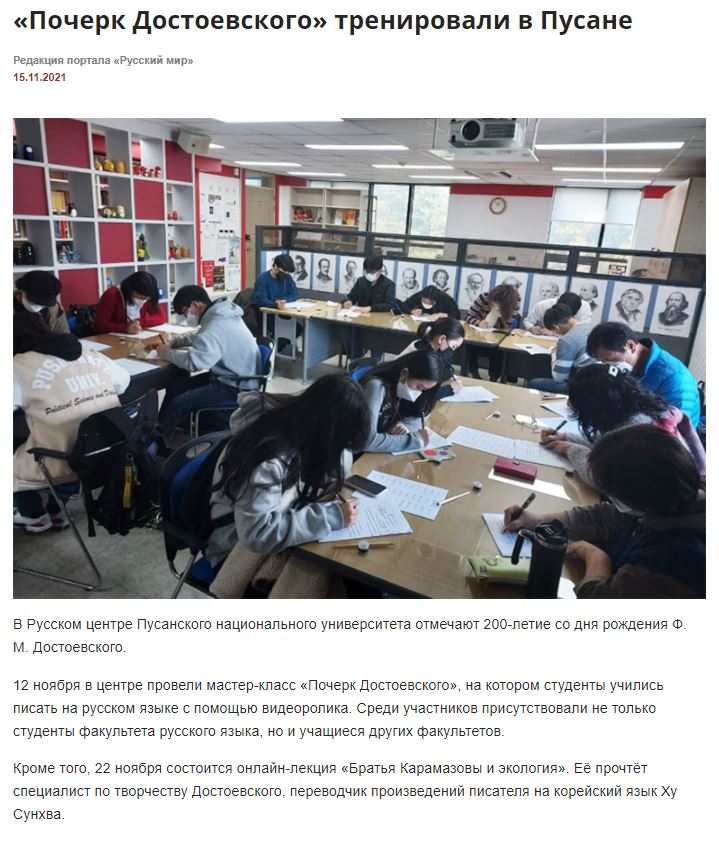 '도스토예프스키의 글씨' 행사, 루스키 미르 재단 포털에 소개