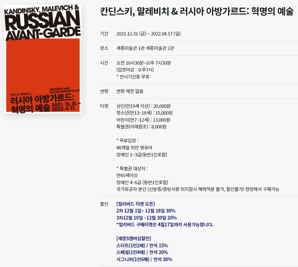 세종문화회관 미술관에서 '칸딘스키, 말레비치 & 러시아 아방가르드' 전이 열립니다.